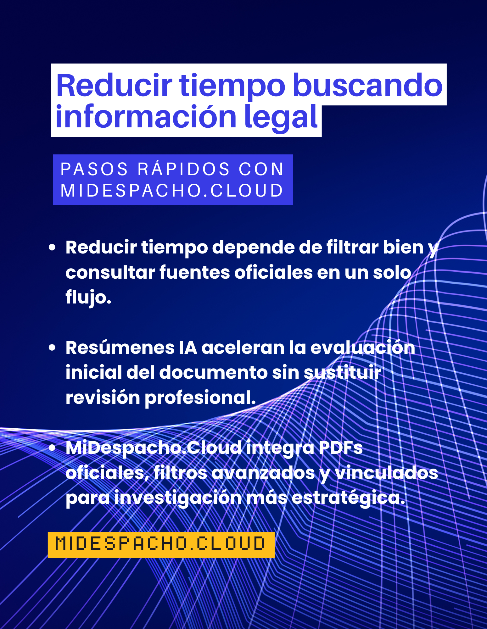 Descarga la imagen y compártela con colegas, socios o amigos del gremio jurídico para tener una guía rápida: fuentes oficiales → filtros → resumen IA → PDF → vinculados.